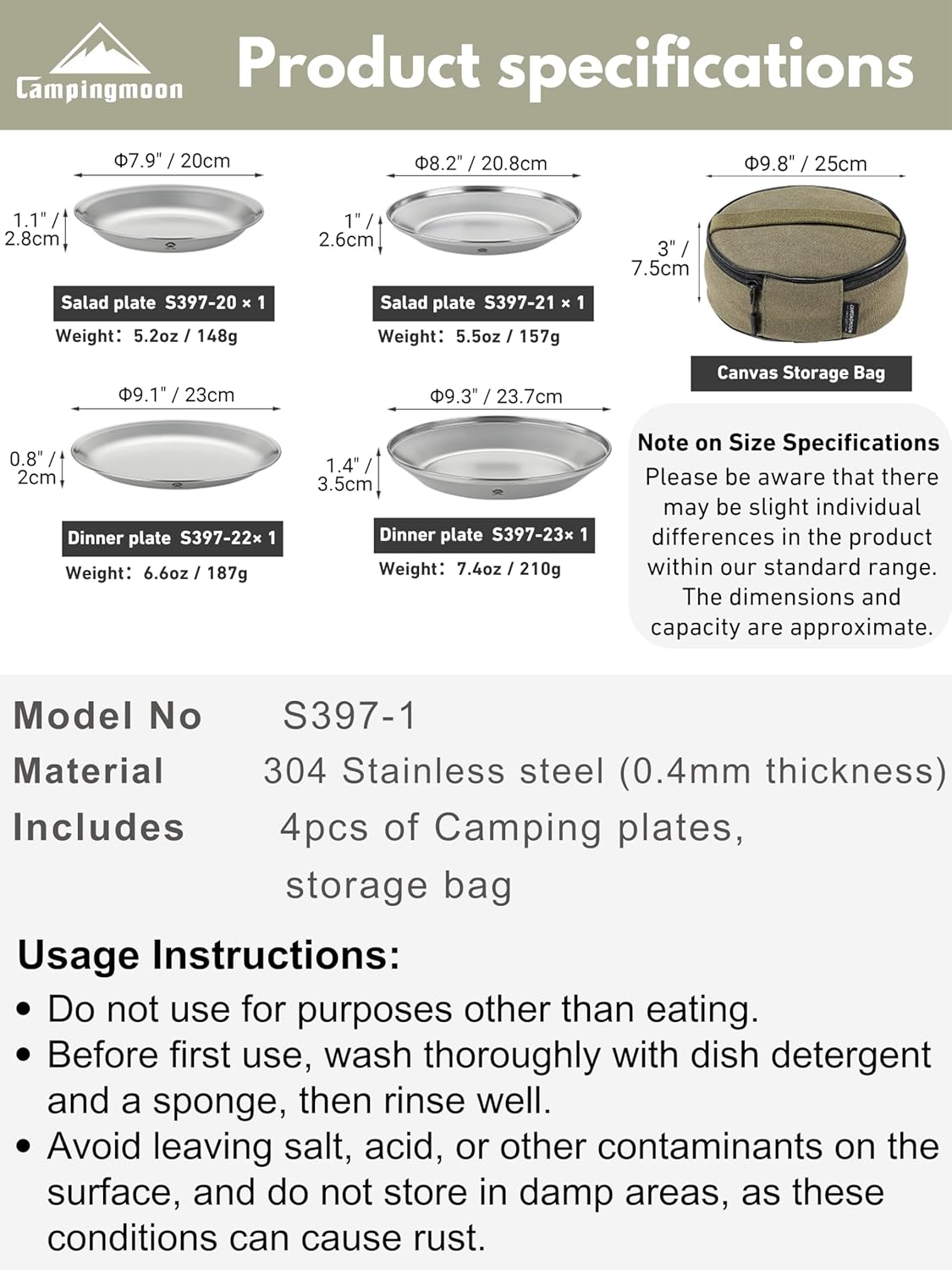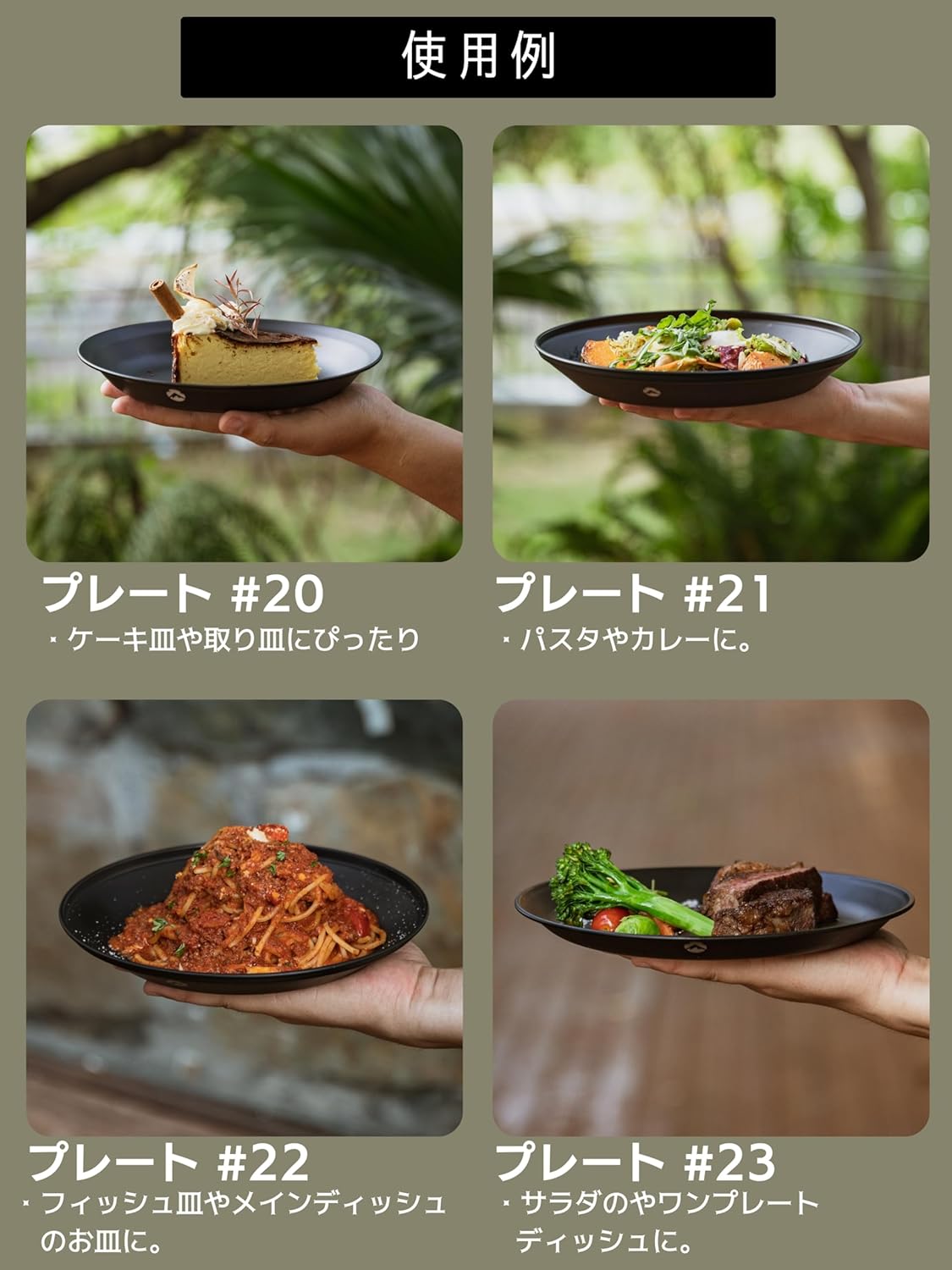 【Dễ sử dụng, thanh lịch giản dị】Các đĩa có vành thấp và có bốn kích cỡ với độ sâu vừa phải, khiến chúng trở nên vô cùng linh hoạt. Lý tưởng để thưởng thức nhiều bữa ăn khác nhau khi cắm trại.