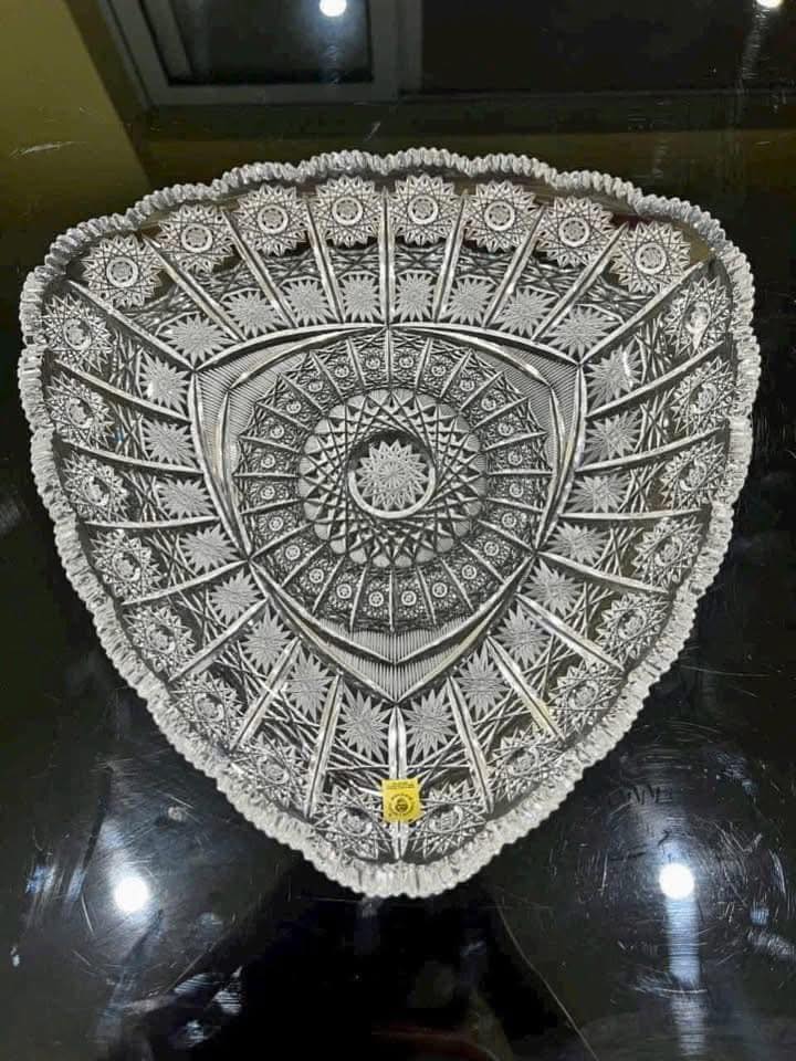 Đĩa pha lê mài hoạ tiết Bohemia đường kính 31cm Bohemia đẹp kiêu sa, tính tế đến từng chi tiết các bác nha!