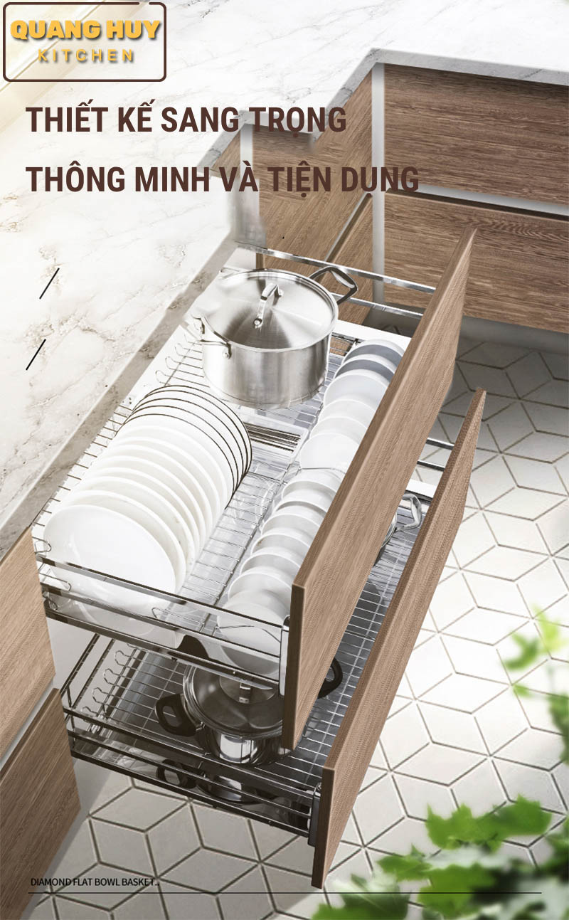 Giá úp bát tủ dưới với thiết kế nan dẹt sang trọng