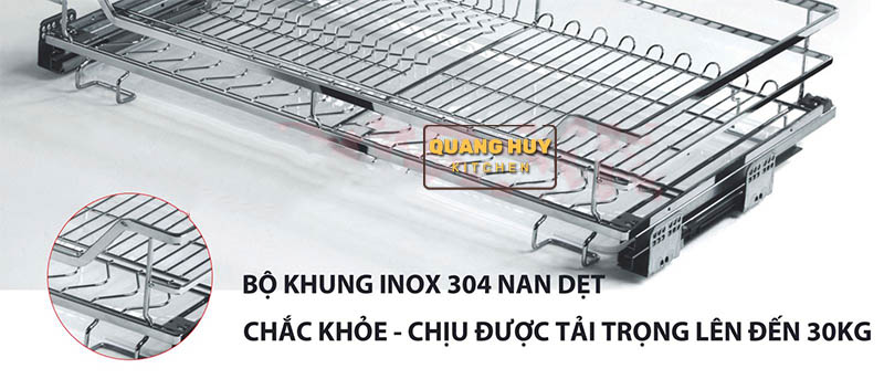 Giá úp bát tủ dưới này được thiết kế chắc chắn không bị rung lắc. Khả năng chịu lực của giá lên đến 30kg