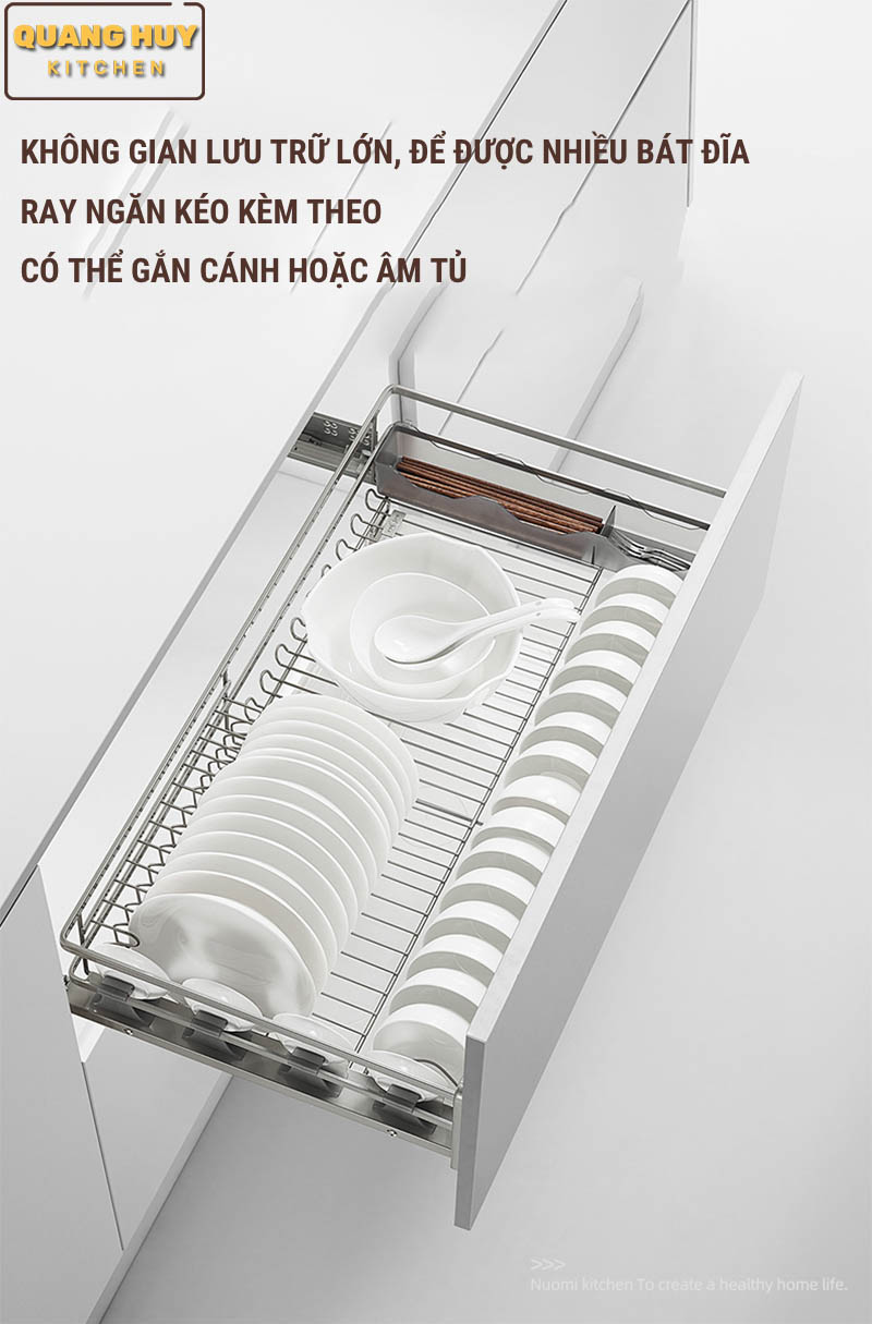 2 vấn đề cốt lõi nhất để mua giá úp bát tủ dưới đó chính là cấu tạo chắc chắc và ray giảm chấn bền hoạt động tốt