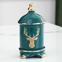 LỌ ĐỰNG TĂM BẰNG SỨ MÀU XANH CỔ VỊT HỌA TIẾT VÀNG SANG TRỌNG ( GIAO HÌNH NGẪU NHIÊN )