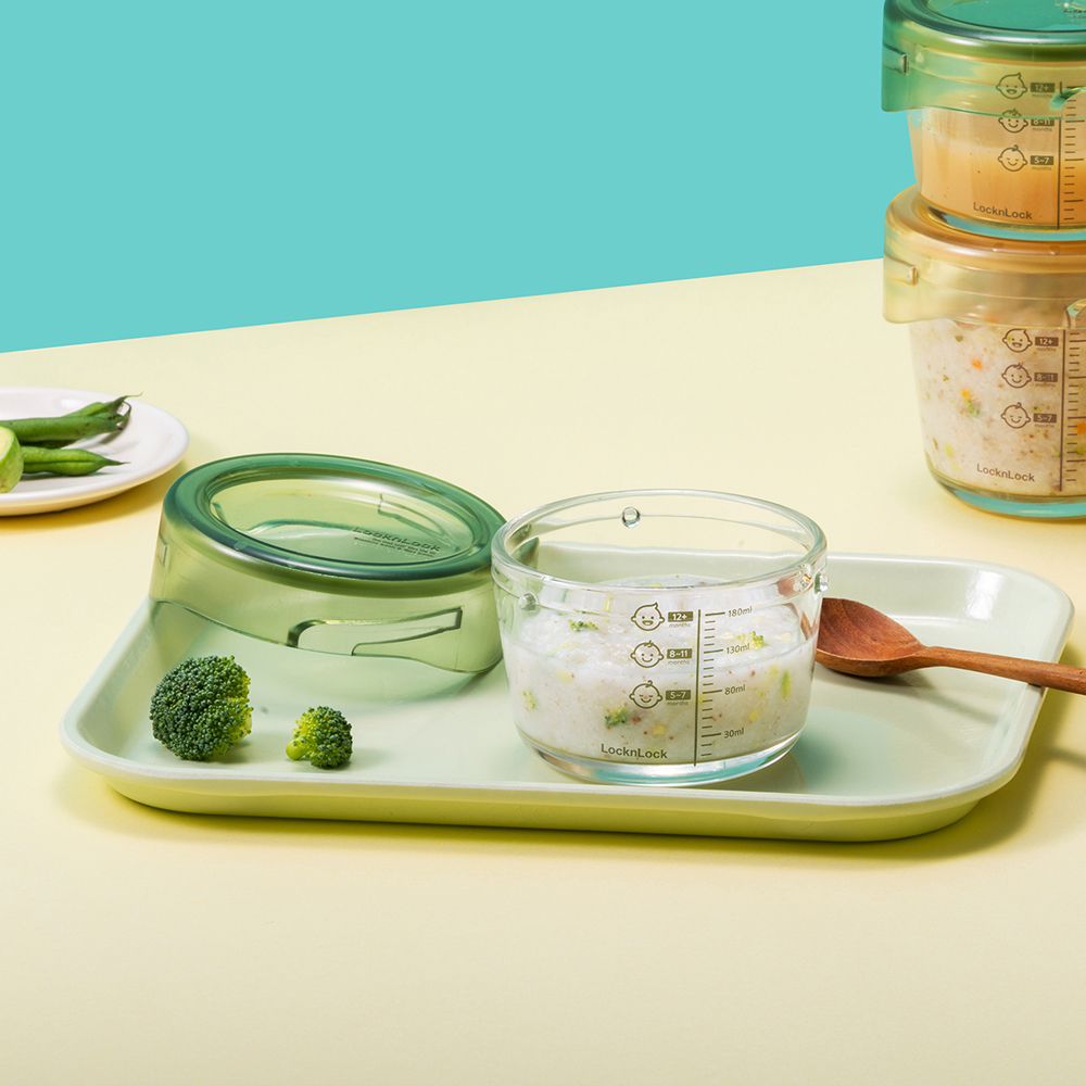 Bộ Hộp Thủy Tinh Đựng Thức Ăn Dặm Cho Bé LocknLock LLG540S3GRN, Hàng Chính Hãng, Vạch Chia - JoyMall