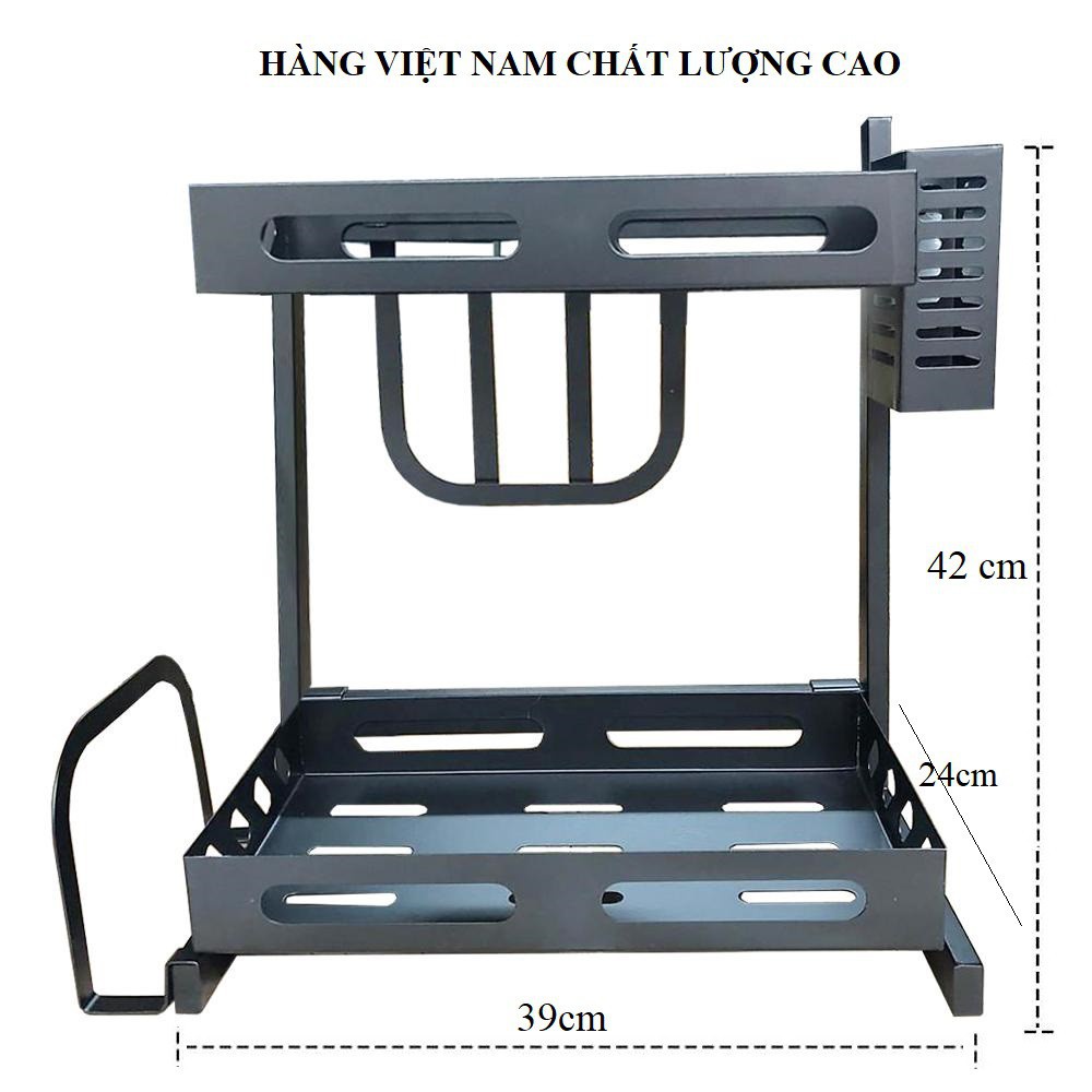 Kệ Để Gia Vị 2 Tầng Inox Sơn Tĩnh Điện Đen - Kệ Để Giao Thớt Đồ Dùng Nhà Bếp Đa Năng