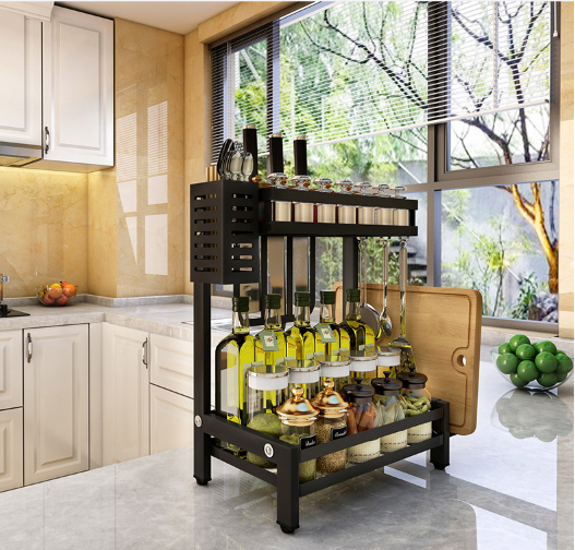 Kệ được thiết kế với kiểu dáng tinh tế, đẹp mắt, có thể chịu lực tốt, nhỏ gọn, dễ dàng lắp đặt cũng như di chuyển. Các tầng của kệ đều được hàn thêm khung bao bọc cao 5cm giúp các chai lọ được để gọn gàng, tránh rơi đổ ra khỏi kệ. Ngoài ra các tầng đều được tạo ra các ô thoáng , tránh việc lưu đọng nước hay ẩm mốc, ngăn ngừa vi khuẩn phát triển, tạo không gian bếp sạch sẽ.