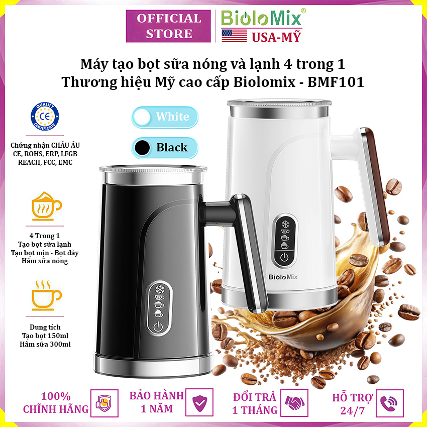 - Máy tạo bọt sữa nóng và lạnh 4 trong 1 Biolomix BMF101 được thiết kế với kiểu dáng sang trọng, độc đáo và cao cấp. Máy có thể tạo bọt sữa nóng, lạnh cho cappuccino, đồng thời làm nóng sữa để pha latte...