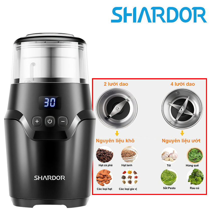- Máy xay cà phê và gia vị Shardor CG639 được thiết kế hiện đại, nhỏ gọn và dễ dàng sử dụng, có lưỡi dao được làm bằng thép không gỉ cao cấp cùng động cơ 150W mạnh mẽ, giúp bạn xay mịn hạt cà phê một cách nhanh chóng mà vẫn đảm bảo giữ được hương vị và chất lượng của thực phẩm.