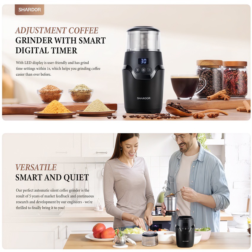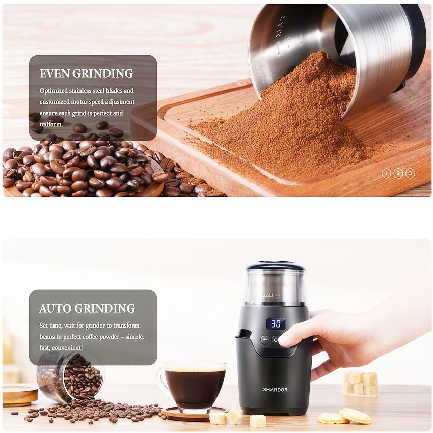 - Máy xay cà phê và gia vị Shardor CG639 được thiết kế hiện đại, nhỏ gọn và dễ dàng sử dụng, có lưỡi dao được làm bằng thép không gỉ cao cấp cùng động cơ 150W mạnh mẽ, giúp bạn xay mịn hạt cà phê một cách nhanh chóng mà vẫn đảm bảo giữ được hương vị và chất lượng của thực phẩm.