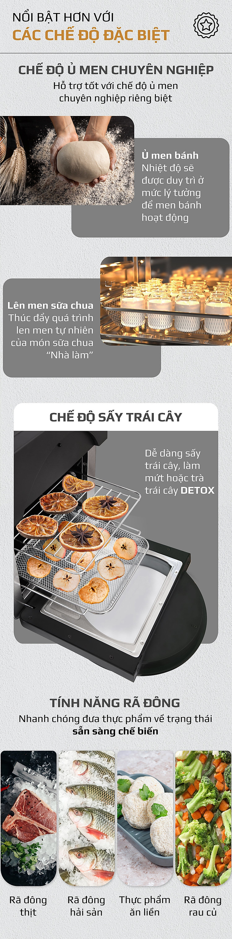 - Do sự kết hợp giữa động cơ công suất lớn cùng với quạt mô tơ cao cấp giúp cho quá trình làm chín thức ăn diễn ra êm ái, không gây tiếng ồn khó chịu, giúp cho khi chế biến món ăn yên tĩnh không ảnh hưởng đến các hoạt động xung quanh.