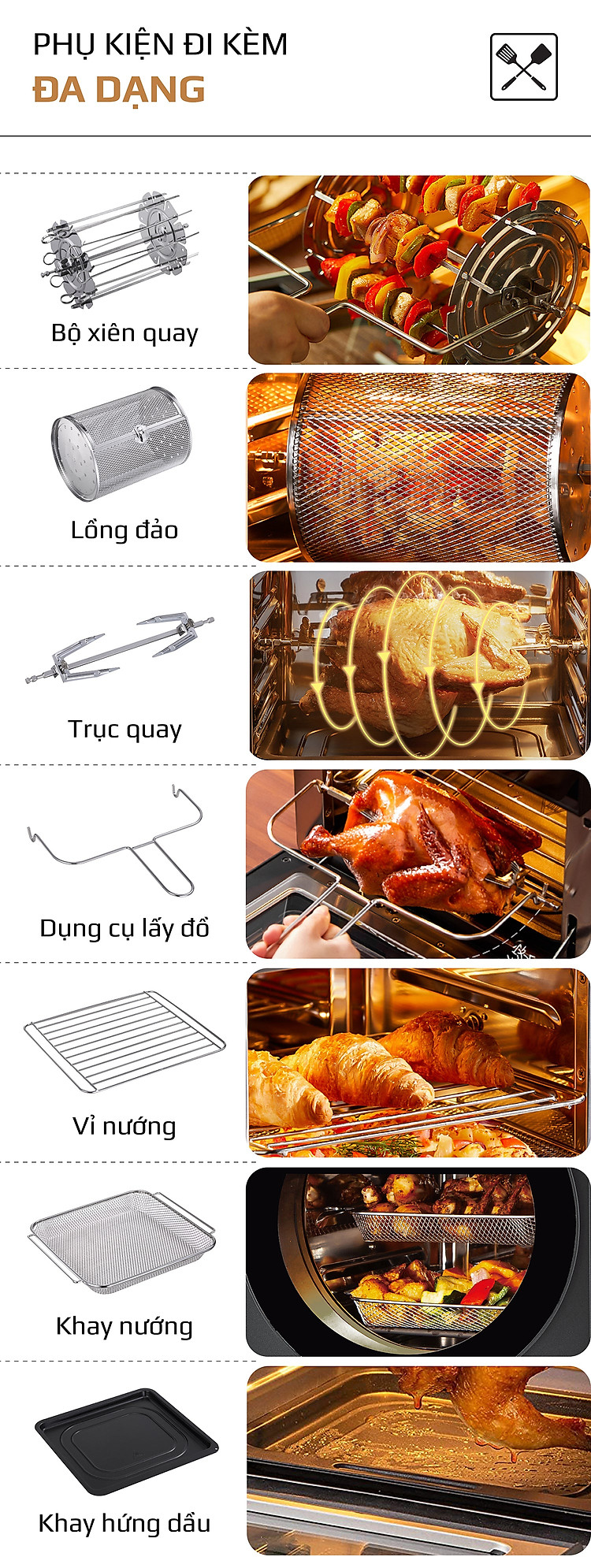 - Bộ phụ kiện này kết hợp với những tính năng và công nghệ tiên tiến ưu việt có trên OLIVO AF15 giúp bạn có thể làm vạn món ngon, đổi món liên tục mà không bị ngấy và nhàm chán.