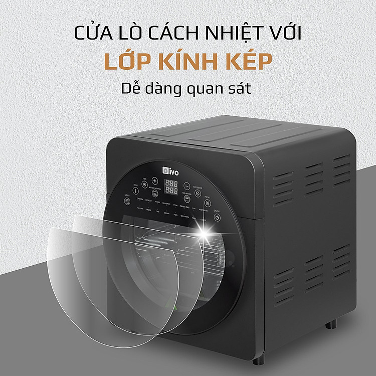 - Với cửa kính trong suốt cũng giúp cho người sử dụng dễ dàng quan sát được thực phẩm trong quá trình nấu, hạn chế quá thời gian, nhiệt độ gây cháy. Như thế, bạn có thể kiểm soát được độ chín của thực phẩm dễ dàng nhất là khi làm bánh. Bạn cũng không cần mở ra, đóng lại trong quá trình nấu gây mất nhiệt, cũng như không ảnh hưởng đến hoạt động của nồi chiên và hương vị của món ăn. Mặt kính kép cũng giúp Bạn dễ dàng vệ sinh hơn sau khi chế biến thực phẩm.