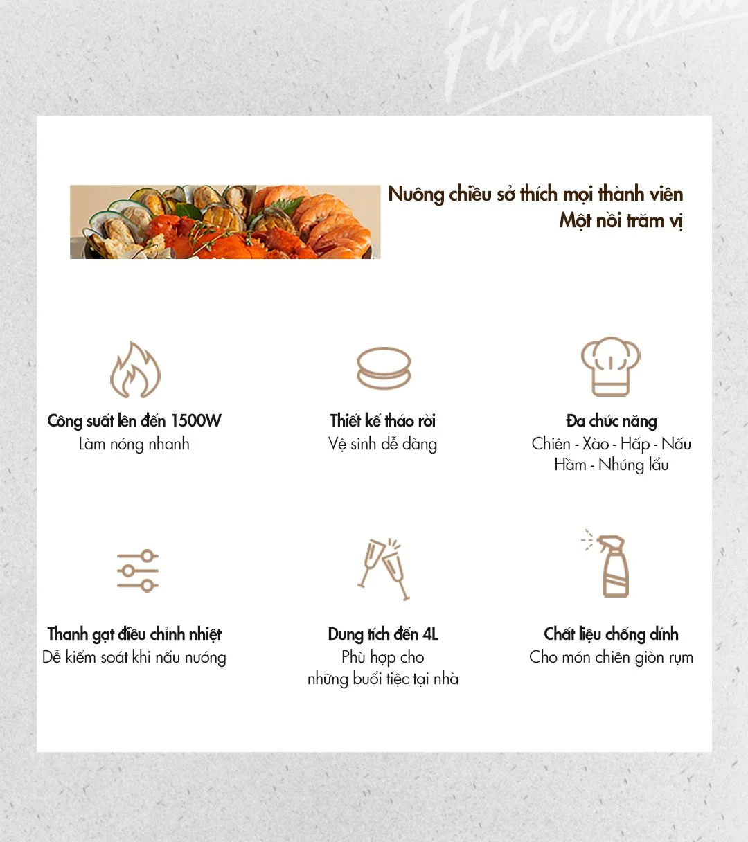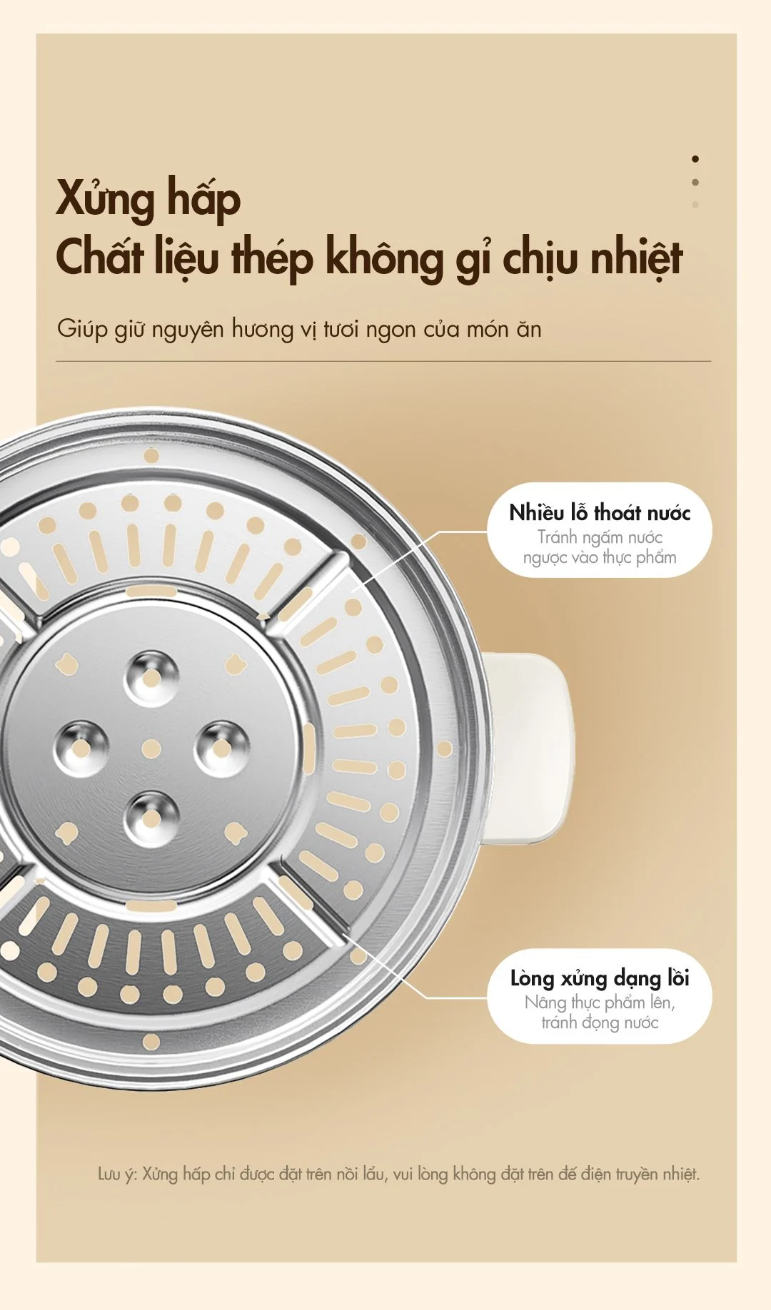 | Chất liệu lòng nồi | Thép phủ lớp chống dính an toàn |