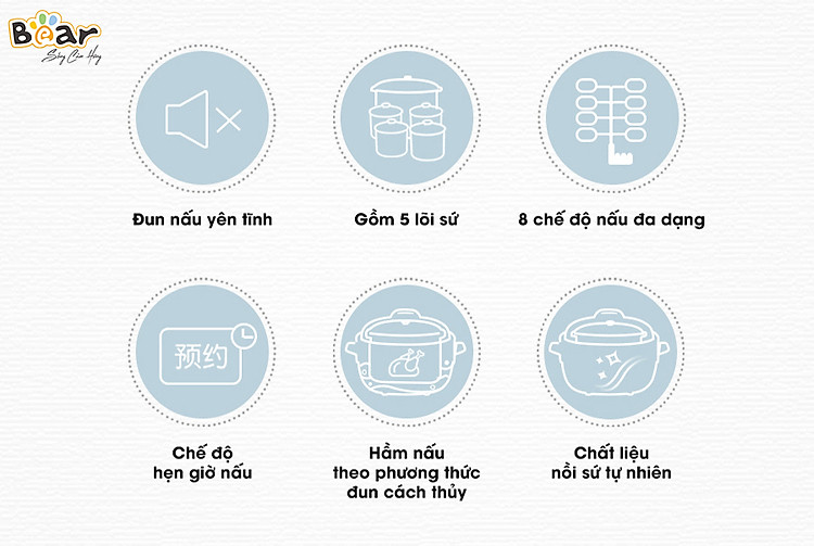 Hãng: Bear | Xem thêm các sản phẩm Nồi tiềm, nồi nấu cháo của Bear