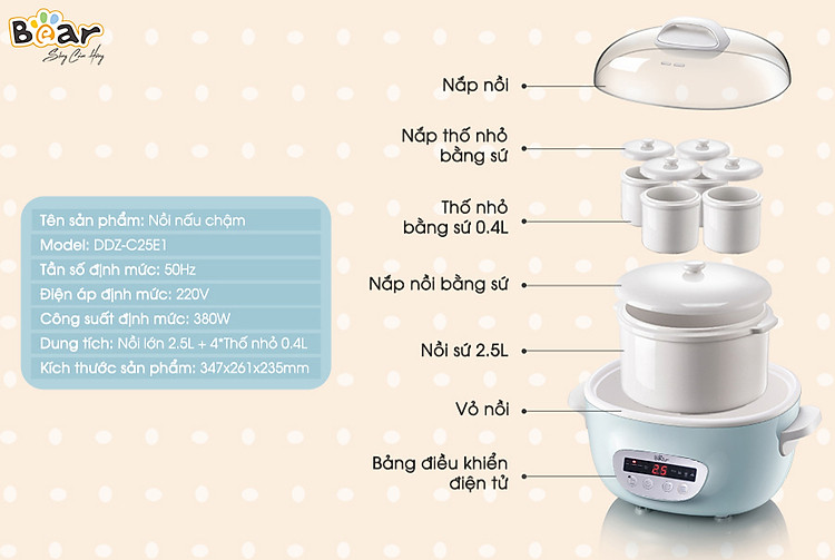 Thông số kỹ thuật của nồi cháo chậm Bear 2.5L