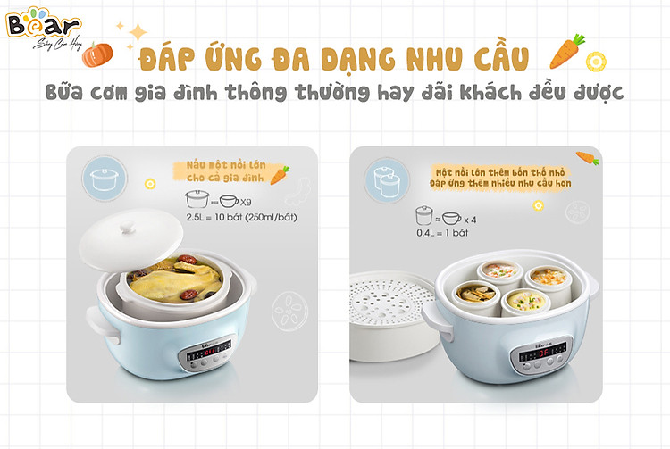 Nồi nấu cháo chậm Bear 2.5l bản Quốc Tế, chính hãng tại Bear Việt Nam