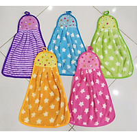 Bộ 5 khăn lau tay nhà bếp siêu thấm có móc treo in hình đẹp (Giao nhiều màu)